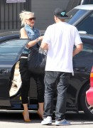 Gwen Stefani heading into a radio station studio in LA